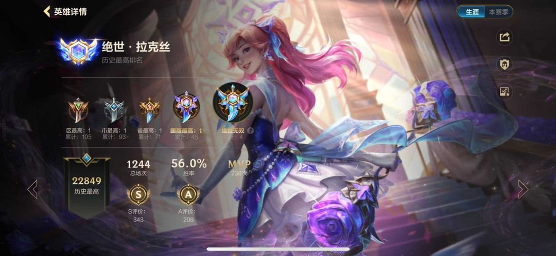 【魂】659皮在榜国32辅助路✨四国一历史国一辅助路✨王者90⭐可排丨臻藏套水晶玫瑰顶尖辅助号