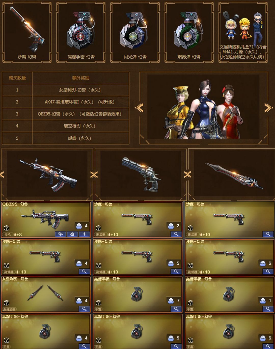 绝版蝴蝶幻兽套❤冠军幻神音效卡❤白虎AG冠军QBZ冠军之特❤宠儿雷神N9赛事荣耀套❤7音效卡满生化