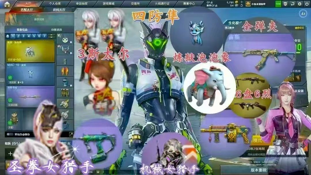 炼狱-泡泡象四防隼+双枪娘斯太尔蝴蝶毒蜂龙宝+生化6盘6烈宙斯+女圣拳机械女猎手暗影猎人全弹夹