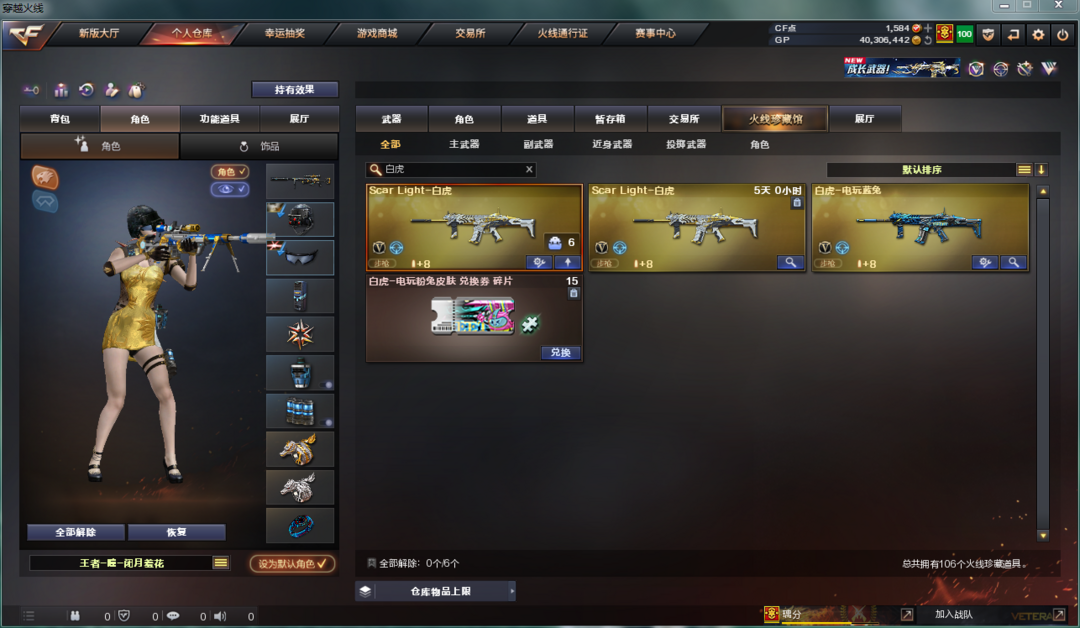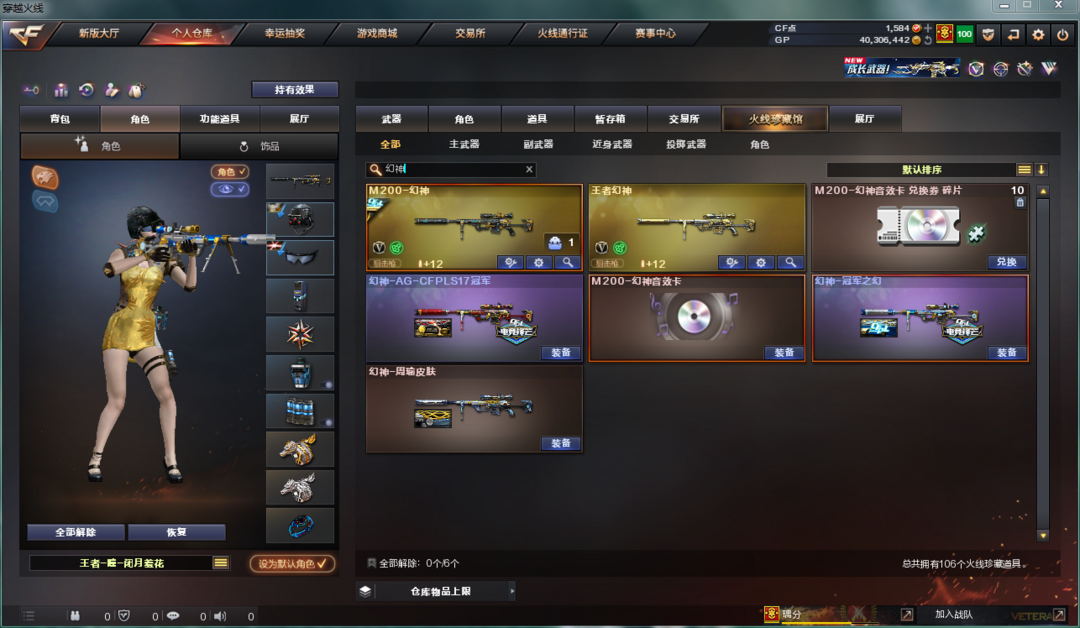 限制: 租号1次及以上 |装备描述:王者武器:盘龙-悦心;炫金火麒麟;炫金黑龙;炫金雷神;王者之怒;王者之啸;高爆手雷-雷霆王者;COP 357-雷霆王者-觉醒版;炼狱-悦蓝-觉醒版;烟雾弹-雷霆王者-觉醒版;王者之击-觉醒版;王者之刺-觉醒版;王者之幻-觉醒版;王者之影-觉醒版;王者之灵-觉醒版;王者之锋-觉醒版;王者幻神-觉醒版;闪光弹-雷霆王者-觉醒版;雷霆王者之锋-觉醒版;炫金骑士;炫金千变;炫金超新星 英雄武器:M4A1-死神;AK12-天启;M4A1-千变;M4A1-黑骑士;M4A1-玫瑰精灵;AK47-黑武士;屠龙;AK47-无影;AK47-火麒麟;AK47-麒麟;AWM-天龙;Barrett-毁灭;汤姆逊-烈龙;Barrett-极光;沙鹰-修罗;加特林-炼狱;沙鹰-天神;M4A1-雷神;M4A1-黑龙;9A91-烈火;M200-幻神;黑武士-CF网剧冠军;天神-CF网剧冠军;幻灵之锋;擎天-CF网剧冠军;机械迷城-穹宇;白虎-电玩蓝兔;Scar Light-白虎;AK-47-猩红传说;Barrett-暗月传说;QBZ03-金色蔷薇;火麒麟-暗月;Kar98K-星神;黑武士-锦绣游龙;擎天;高爆手雷-堕天神