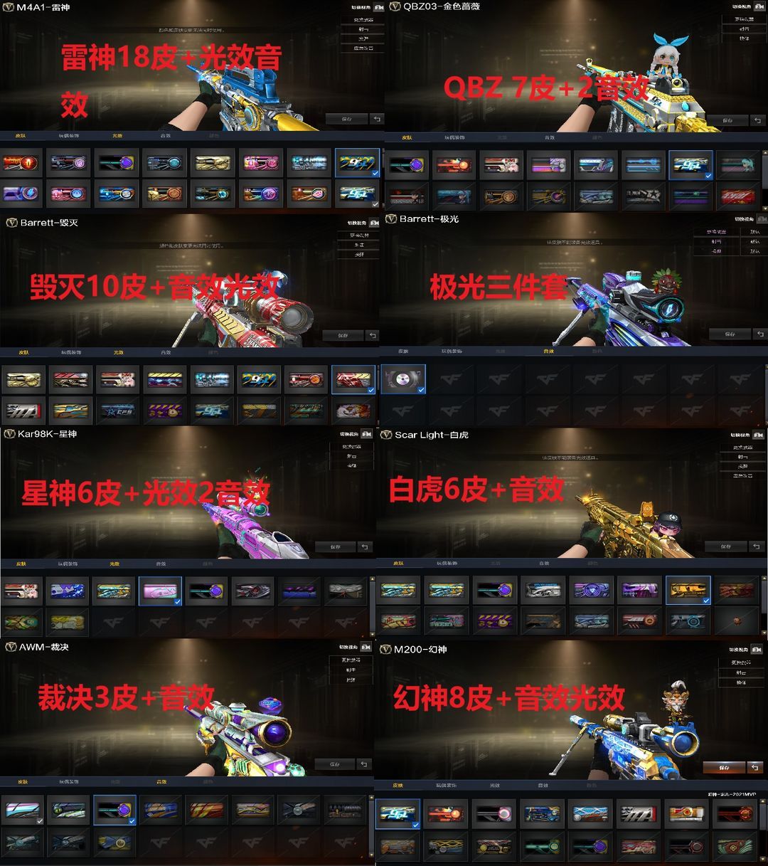 装备描述:>>>>>>毁号,涉及毁坏虚拟财产罪及计算机安全罪,请文明游戏素质游戏,让我们共建美好租号平台>>>>>> 本游戏账号:英雄武器290个; 王者武器59个。 装备不多,但是主武器、副武器、近身武器够用 拥有完美游戏体验。重要的是,特殊装备有:M4A1-雷霆、雷霆之怒、雷霆之锋、雷霆之契、USP-雷暴、AK47-雷暴、AWM-天龙、Scar Light-白虎、M4A1-青龙、M200-幻神、传说灵眸、AA-12-雷霆、传说梦魇、传说梦魇(序列号版)、幻灵之锋、COP 357-幻灵、M4A1-幻灵、M14EBR-玄武、Kar98K-星神、麒麟刺、AN94-超新星、传说圣灵(序列号版)、AK47-火麒麟、HK417-朱雀、Barrett-毁灭、加特林-炼狱、QBZ03-金色蔷薇、荣耀世冠-柯尔特、荣耀世冠-龙啸、M4A1-雷神、M4A1-黑龙、M4A1-玫瑰精灵、荣耀世冠-雷神、荣耀世冠-火麒麟、M4A1-黑骑士、AK47-黑武士、王者蔷薇-觉醒版、王者之武-觉醒版、炼狱-悦蓝-觉醒版、炫金毁灭、王者之怒-觉醒版、COP 357-雷霆王者-觉醒版、炫金骑士、王者之心-觉醒版、高爆手雷-雷霆王