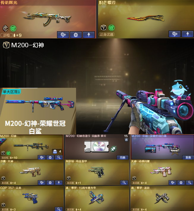 传说辉光⭐M200-幻神(荣耀世冠白鲨)⭐白虎+白虎电玩蓝兔⭐炽芒蝶刃+COP云龙⭐6烈斯泰尔蝴蝶