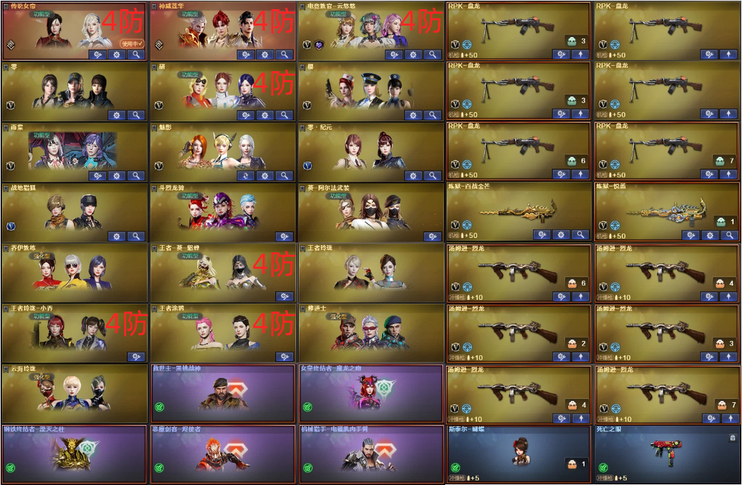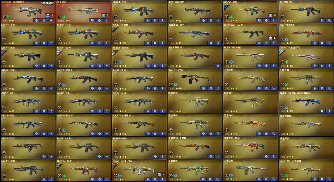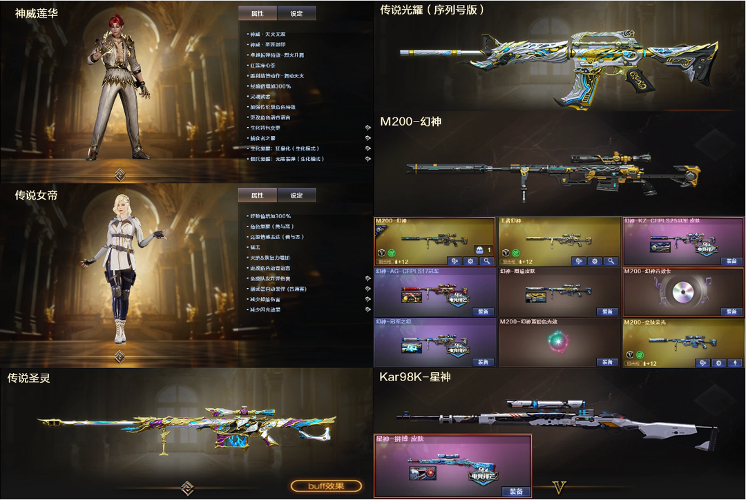 圣灵光耀4防女帝神威莲华✅幻神6皮音效+裁决白虎三件套✅星神幻影QBZ天袭+4满副炽芒✅蝴蝶6烈6盘