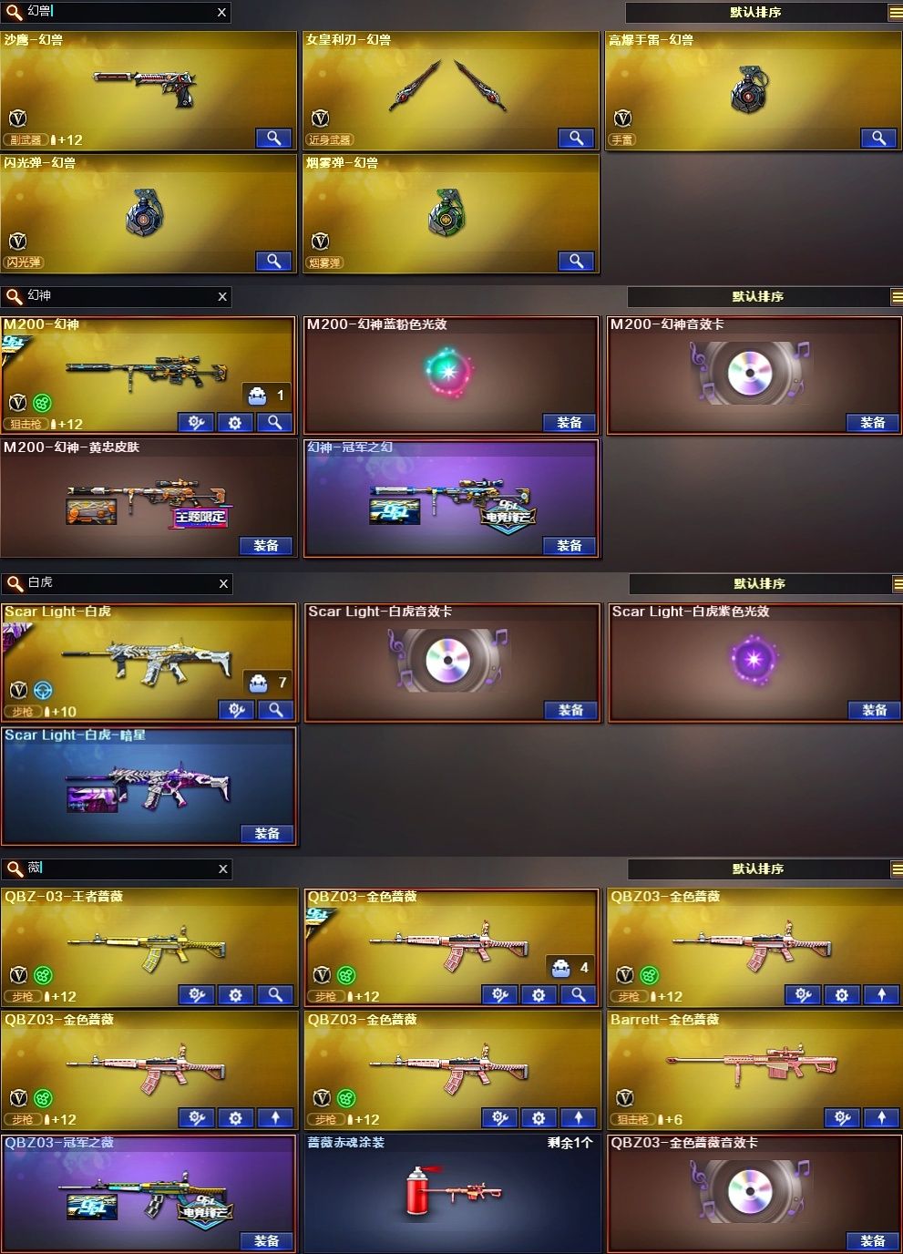 239V✨幻兽套✨幻神2皮+幻神音效卡✨12质量副手G36蝶刃✨星神白虎蔷薇✨蝴蝶7烈6盘4炼狱