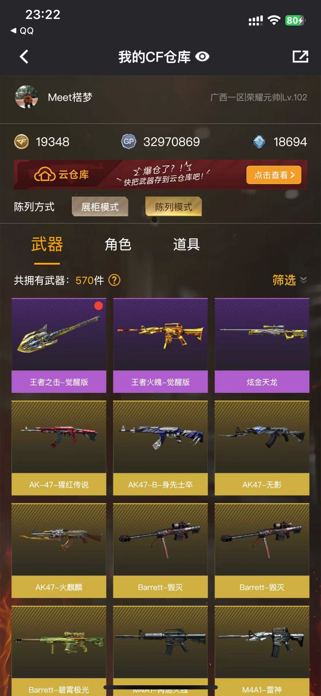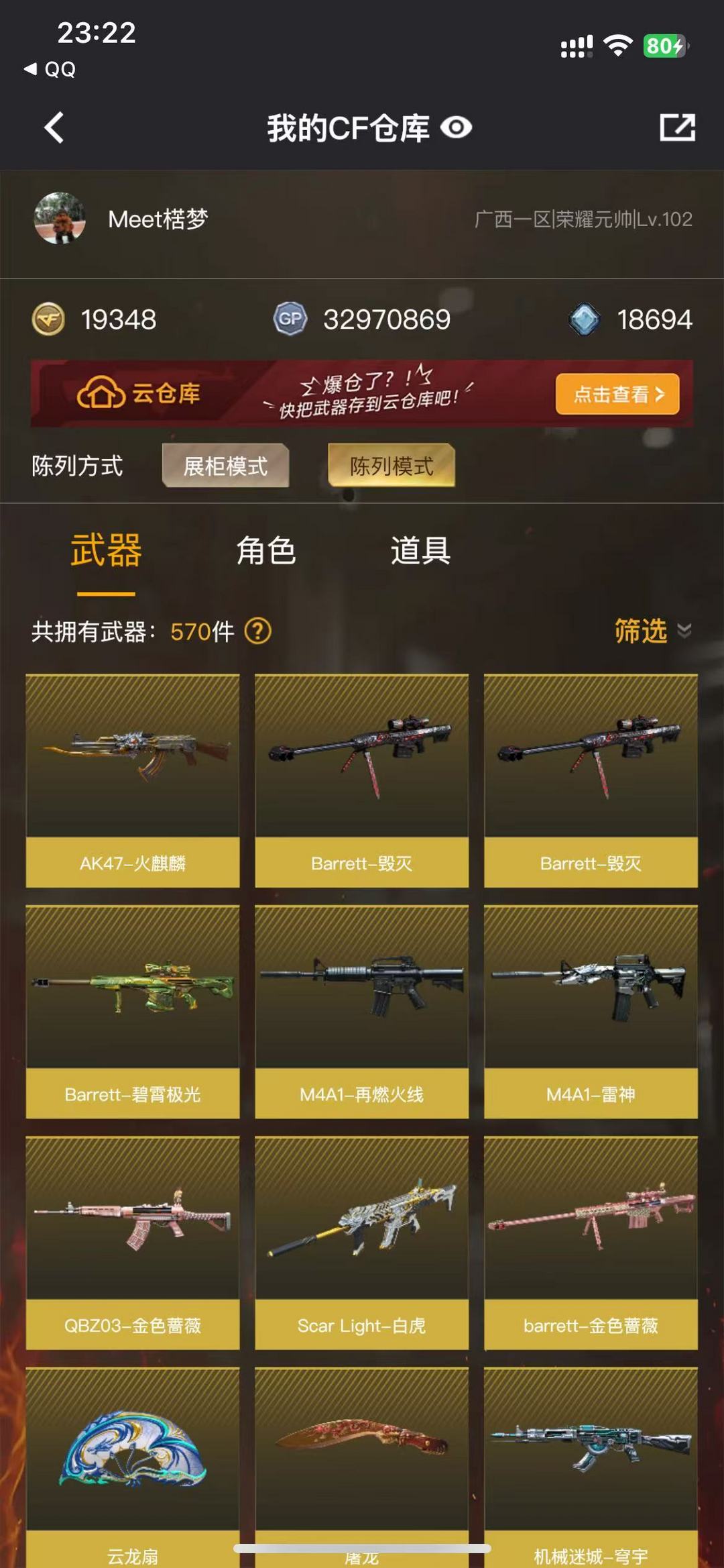 装备描述:王者武器:王者之击-觉醒版;炫金天龙 英雄武器:Barrett-碧霄极光;机械迷城-穹宇;手雷-热带奇洋;烟雾弹-云龙;高爆手雷-云龙;闪光弹-云龙;云龙扇;Scar Light-白虎;沙鹰-天神;沙鹰-修罗;QBZ03-金色蔷薇;黑武士-锦绣游龙;龙啸-烈火龙威;AK47-B-身先士卒;AK-47-猩红传说;黑骑士-海王;龙啸;AK47-火麒麟;Barrett-毁灭;AK47-无影;屠龙;M4A1-雷神 角色:猎狐者;飞虎队;刀锋;潘多拉;雷霆-β;复仇者;堕天使;陈龙野-Y;救世复仇;救世主;精英部队;灵狐者;烈锋;堕落女神;王力宏;灵狐者-黄金海岸;王者零-传说之路;新娜塔莎;雷豹;蜀雪;暗夜-X;青霞仙子;妲己;新曼陀罗;圣诞潘多拉-X;代号:翼;斯沃特-锋芒精英;风暴女;维纳斯;游珑儿;秦师;夜玫瑰-宠粉;猎狐者-X;金戈;铁骑 道具:防弹衣;极限战斗背包;弦波科技无线电;冲锋枪弹匣;绿色巨人;疯狂宝贝;防化服;C4工具钳;手雷包;防弹衣;防弹头盔;步枪弹匣;云山科技背包;智眸战术目镜;听风战术耳机;手雷包;灵魂忍者;迷雾幽灵;疯狂宝贝;防化服;C4工具钳;防弹衣;防弹头盔;
