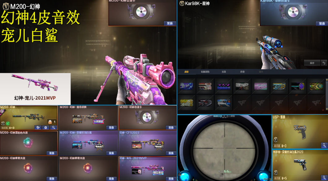 幻影丨M200幻神4皮音效宠儿白鲨/星神音效卡丨蔷薇音效卡/裁决音效卡5皮/电玩蓝兔白虎丨usp雷暴