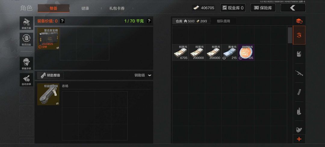 装备描述:暗区突围千万柯恩币账号,欧皇号,刚刚出机密,柯恩币40万,仓库价值41多万,有十多把满改枪械,有钥匙,有六格保险箱,有很多枪皮,战斗分高,别做出一切减少信誉分的游戏行为,别开挂,别毁号后撤单!欢迎老板上号!