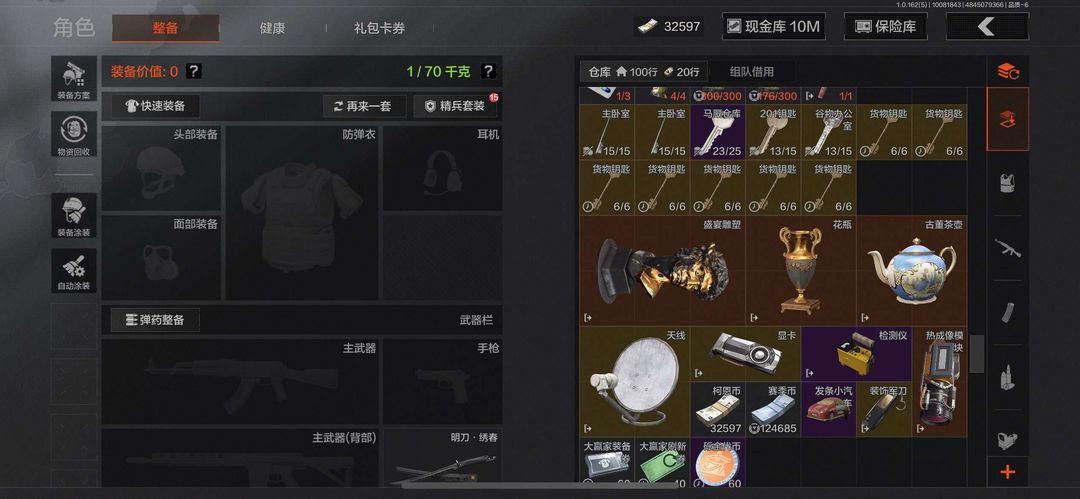手套+绣春刀,仓库20m千万坑币,多满改原型托ax50,三t7多六套老板套,有保险和礼盒,多大金可卖