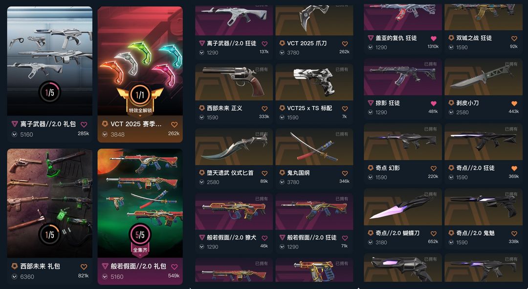 禁排✅离子2.0⚡VCT爪刀⚡西部未来⚡般若太刀⚡双城之战⚡奇点2.0套掠夺⚡盖亚的复仇⚡剥皮小刀
