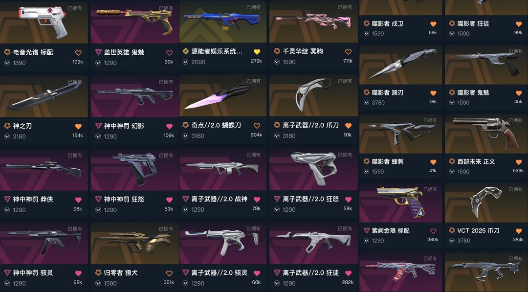 可排✅6万库存.vct爪刀.神中神罚套.离子2.0套.噬影者套.盖亚塑水宗狂徒.西部未来.源能者紫金