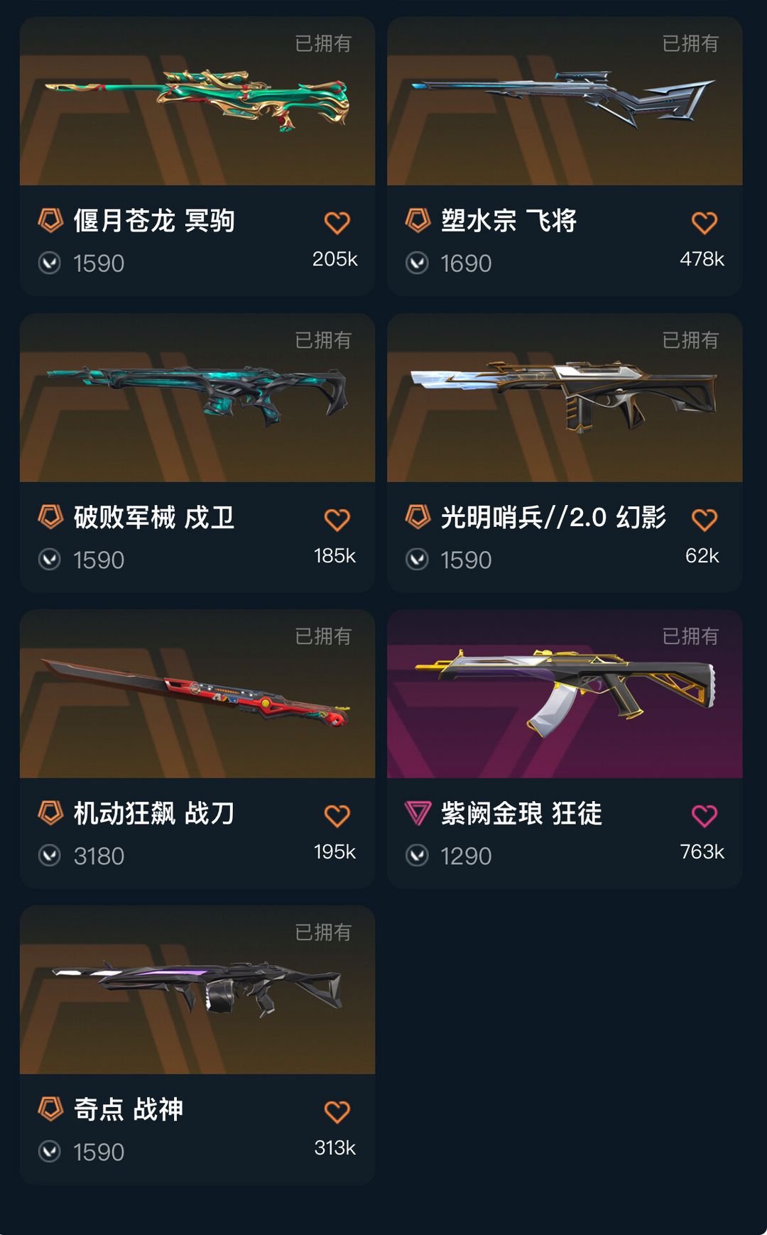 可排✅西部未来❤️显卡爪刀❤️塑水宗❤️混沌紫金狂徒❤️起源冥驹龙狙❤️VCT标配❤️破败戍卫