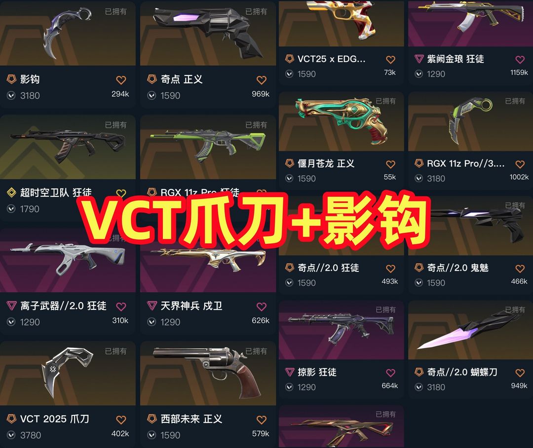 可排✅精品热门★影钩掠夺爪刀★显卡vct爪刀蝴蝶刀★紫金超时空卫队显卡离子2.0★西部未来★奇点正义