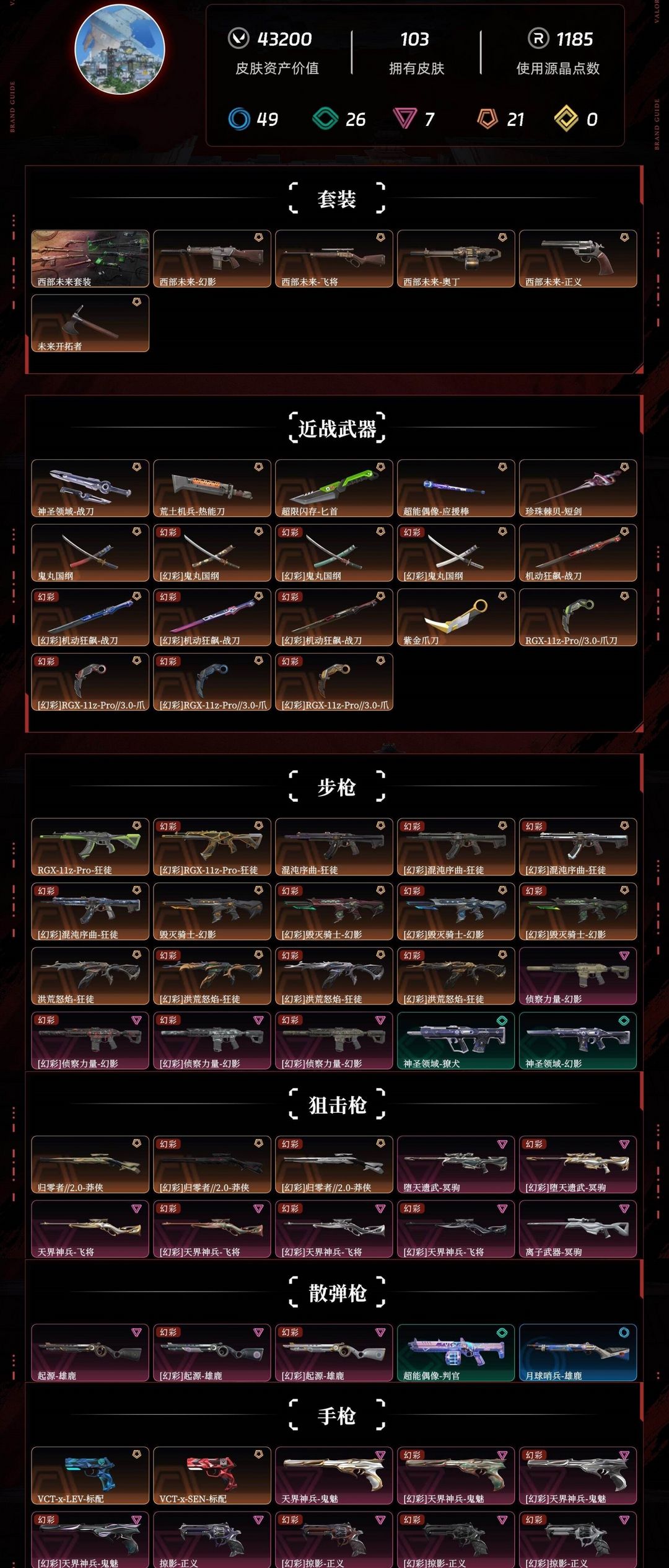 可排✅西部未来⚡显卡爪刀⚡般若太刀⚡混沌流脓狂徒⚡侦查毁灭幻影⚡离子冥狙⚡归零者莽侠⚡天界