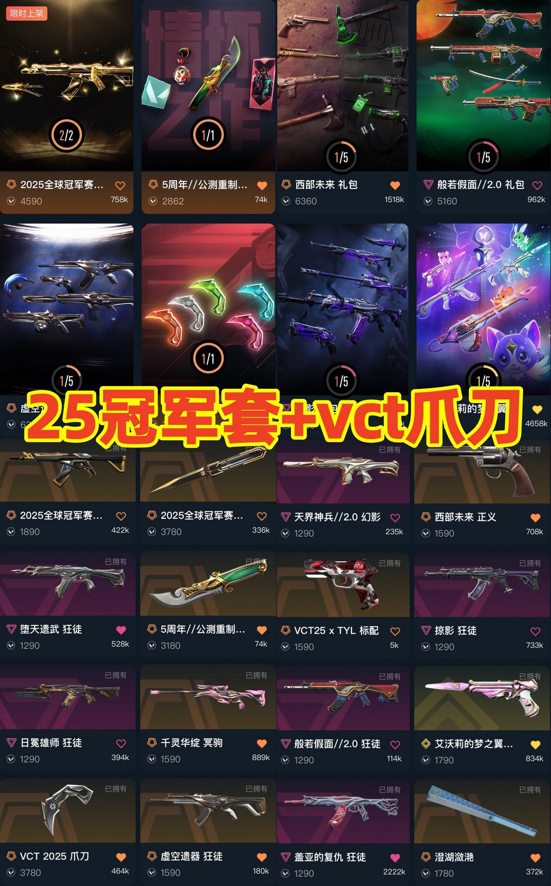 可排❤️25冠军套❤️掠夺狮子弃王虚无盖亚❤️苍龙之刃鱼扇vct爪刀❤️西部未来千灵华绽猫猫梦之翼
