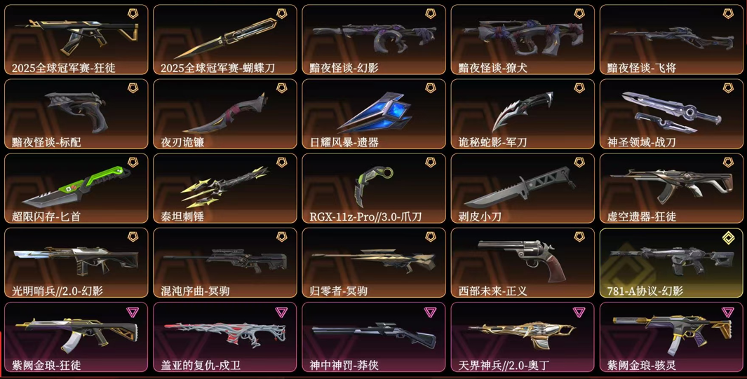 ✅可排✨25冠军黯夜套✨显卡爪刀剥皮小刀✨25冠军紫金虚空AK✨781光明幻影✨西部正义✨混沌归零狙