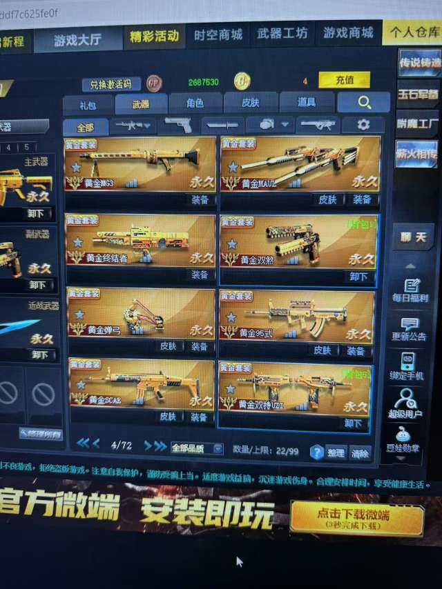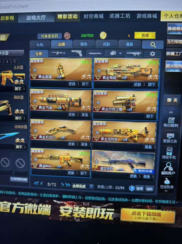 1把传说武器15把彩金武器23把黄金武器38把英雄武器有荣耀ak尼泊尔有黑猫白猫有翅膀滑板有啸天狼