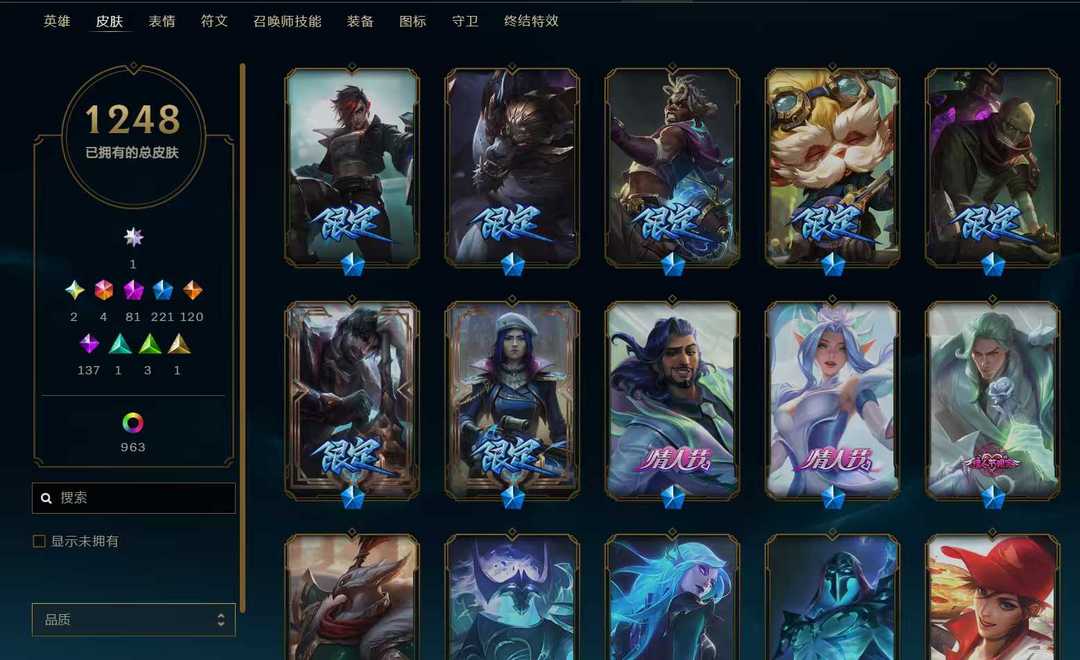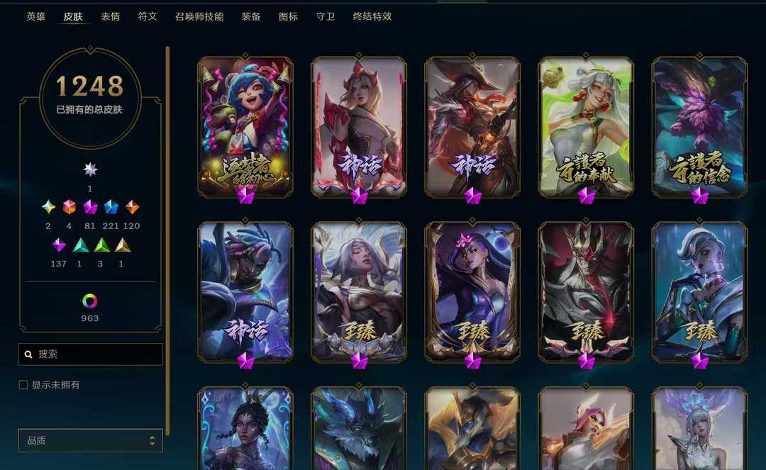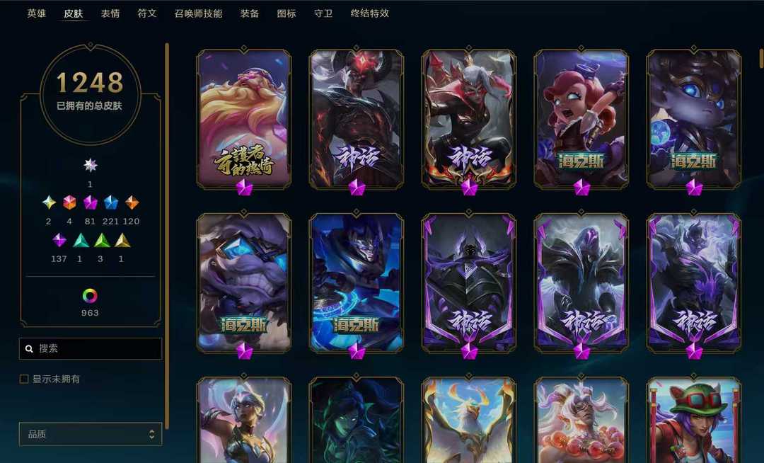 1250原皮⚡81神话⚡双圣堂佛耶戈金克丝⚡4神话幻想⚡马年套双城套⚡殿堂卡莎幸存者杰斯海魔剑魔