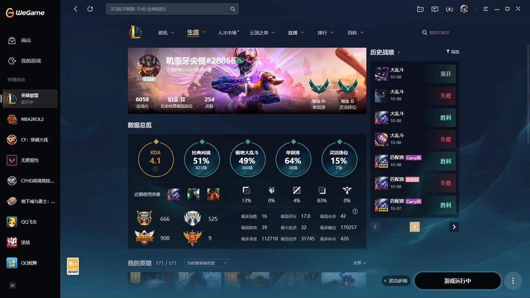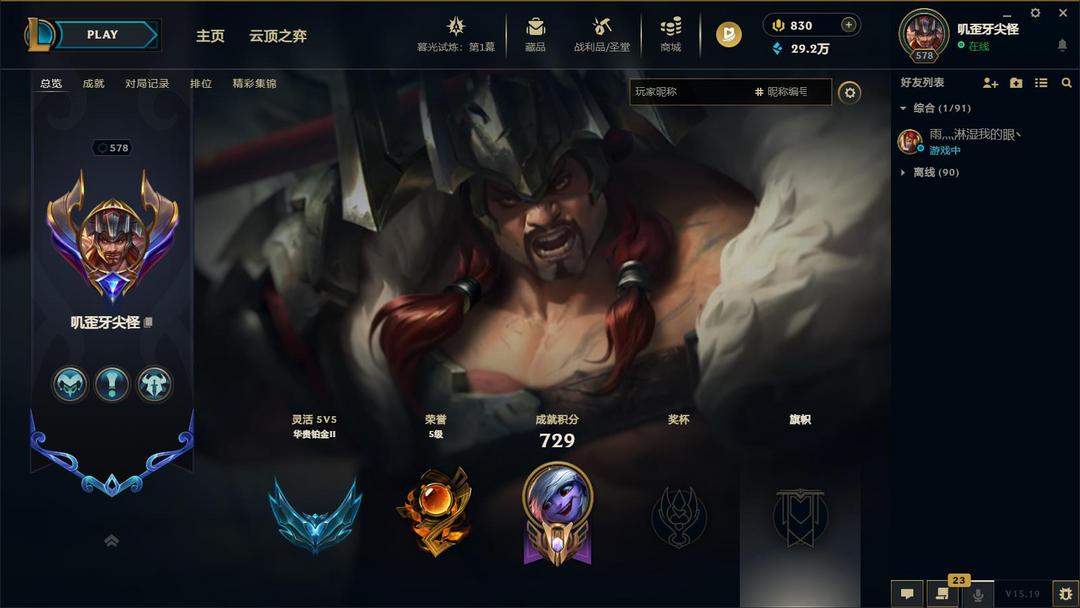 段位:578级 华贵铂金IV级 华贵铂金IV