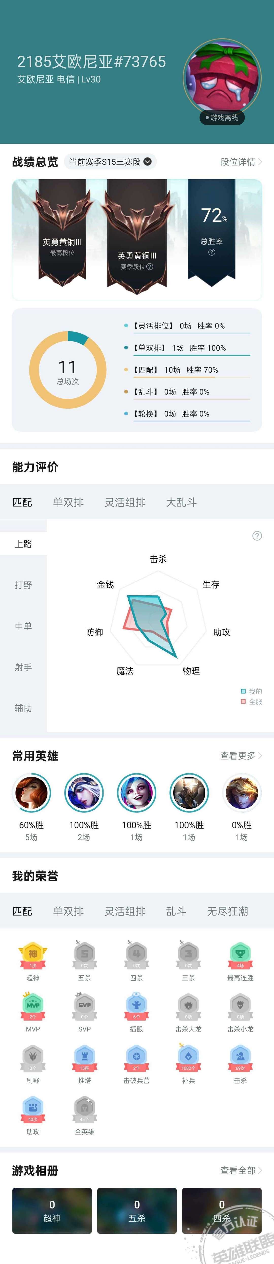 艾欧尼亚 单双灵活青铜白银段 可排位