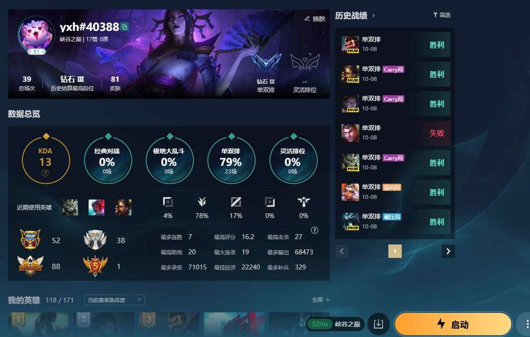 峡谷单双钻石 大师以上隐藏分 打野皮肤多英雄全 带妹专用