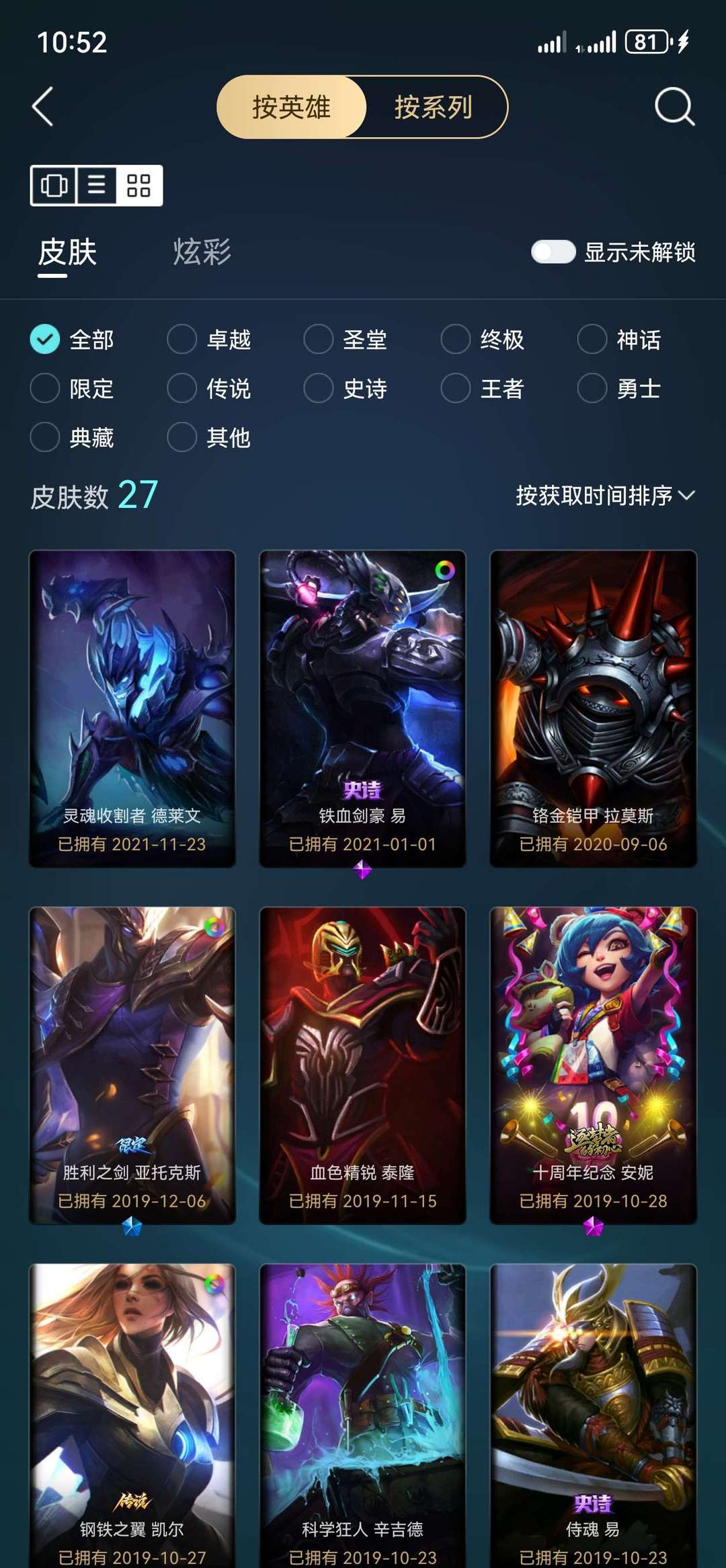 87个英雄、28个皮肤、1个炫彩皮肤