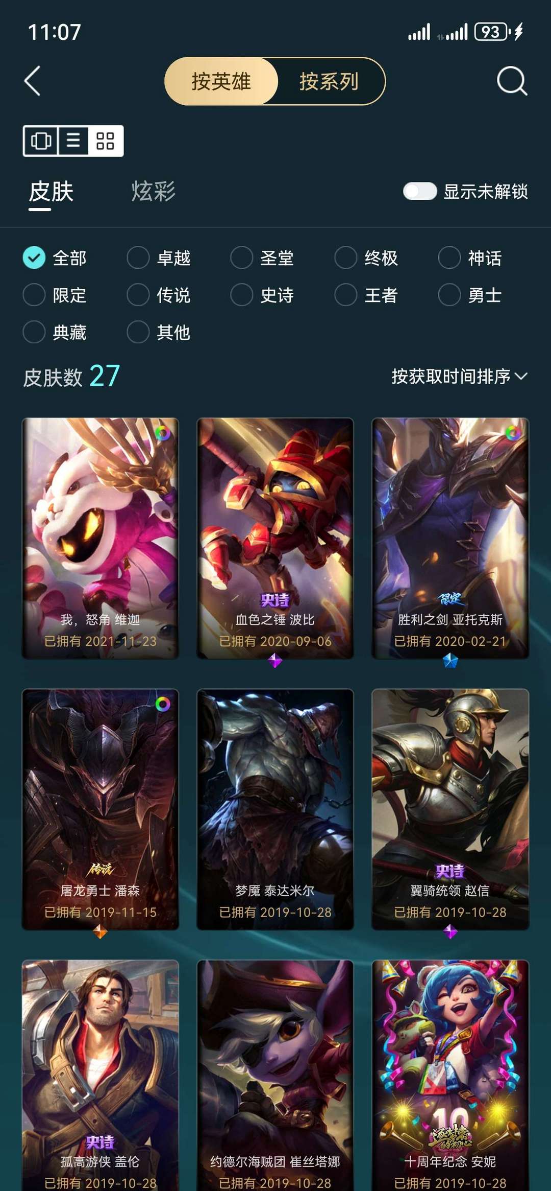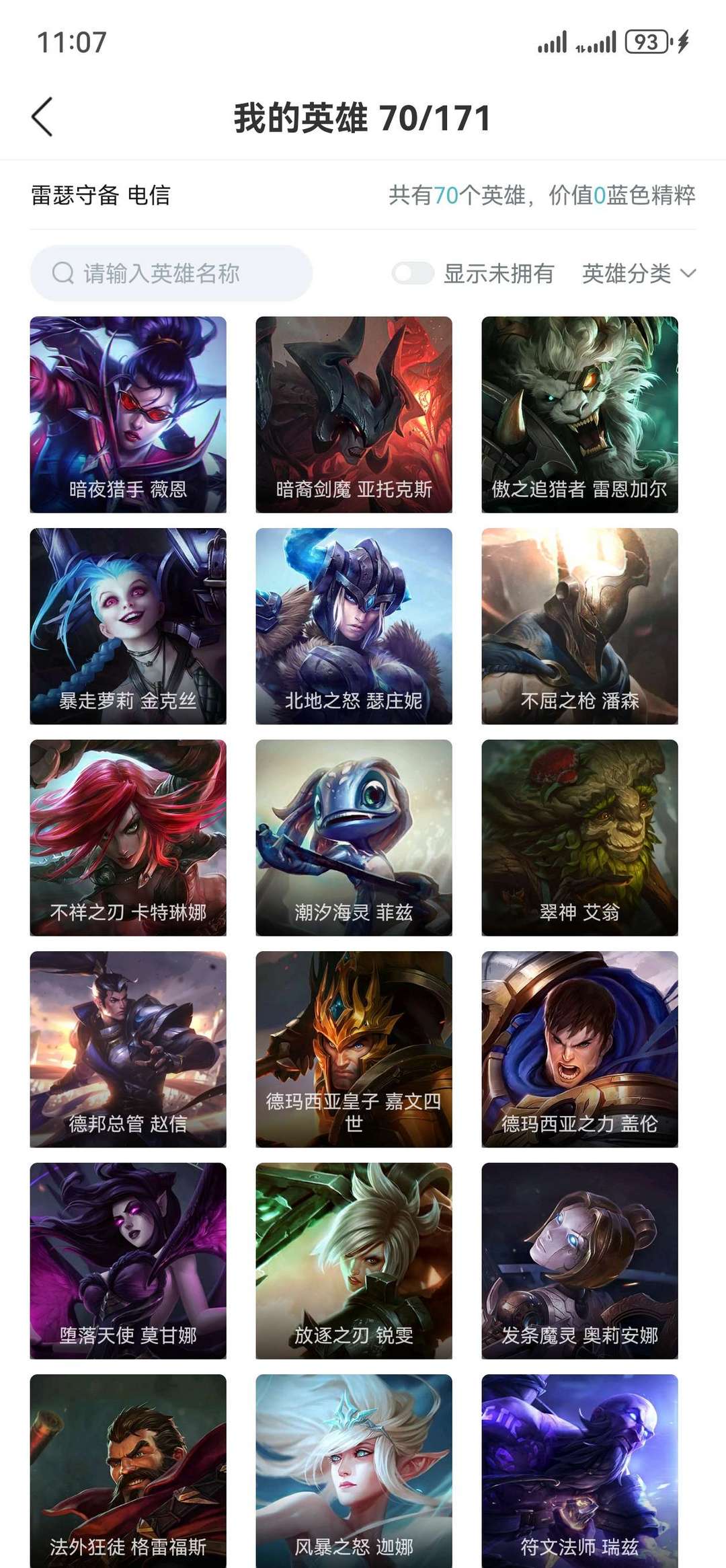 70个英雄、28个皮肤、0个炫彩皮肤