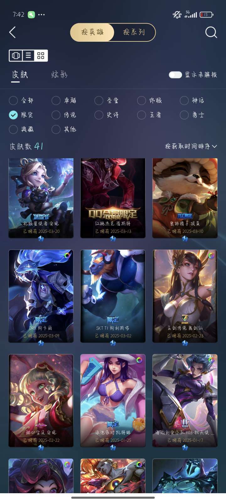 装备描述:主玩ad和法师的,基本上好用的皮肤都有常玩的法师和ad只要有t2皮肤就有,能买至臻也买了。