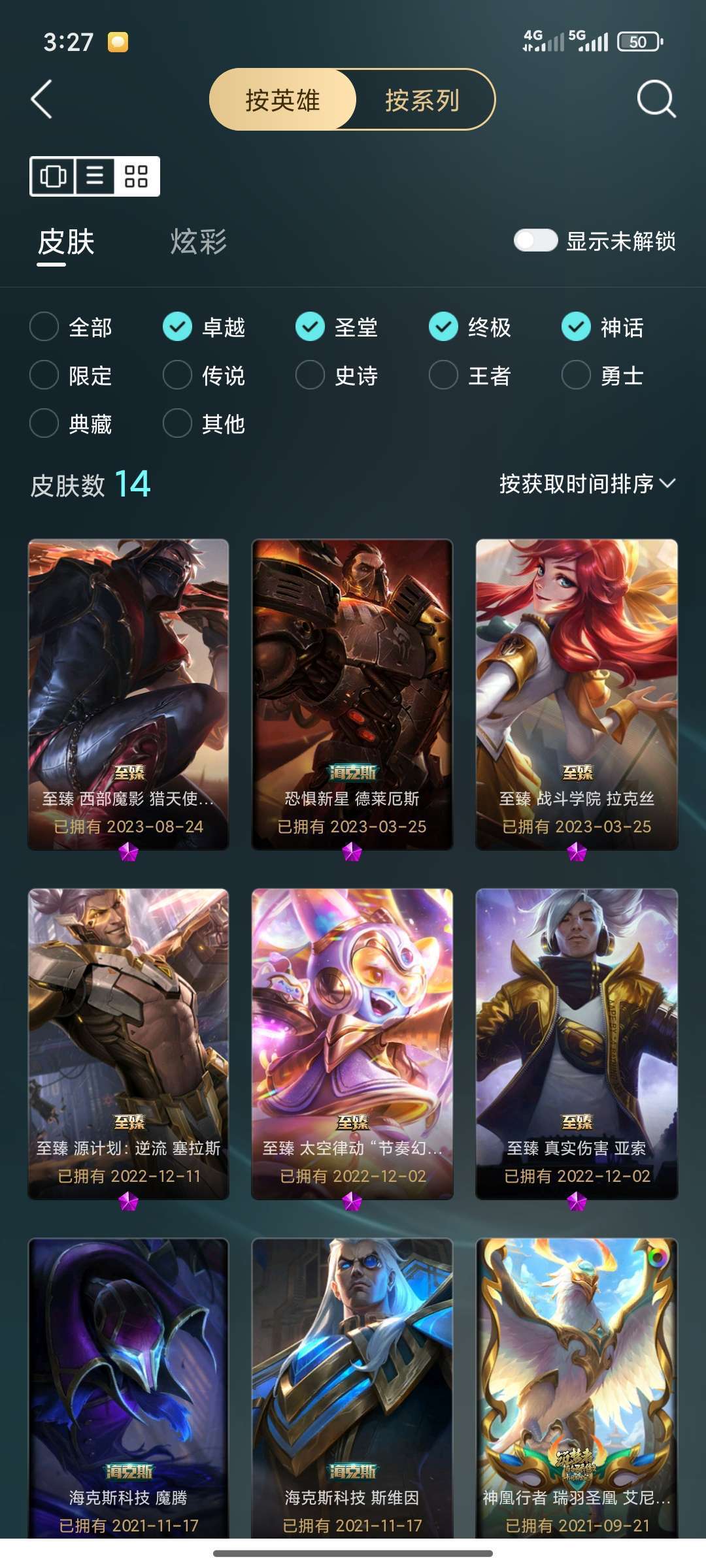 全英雄,500皮肤至臻男刀,亚索,塞拉斯,光辉,各种年限