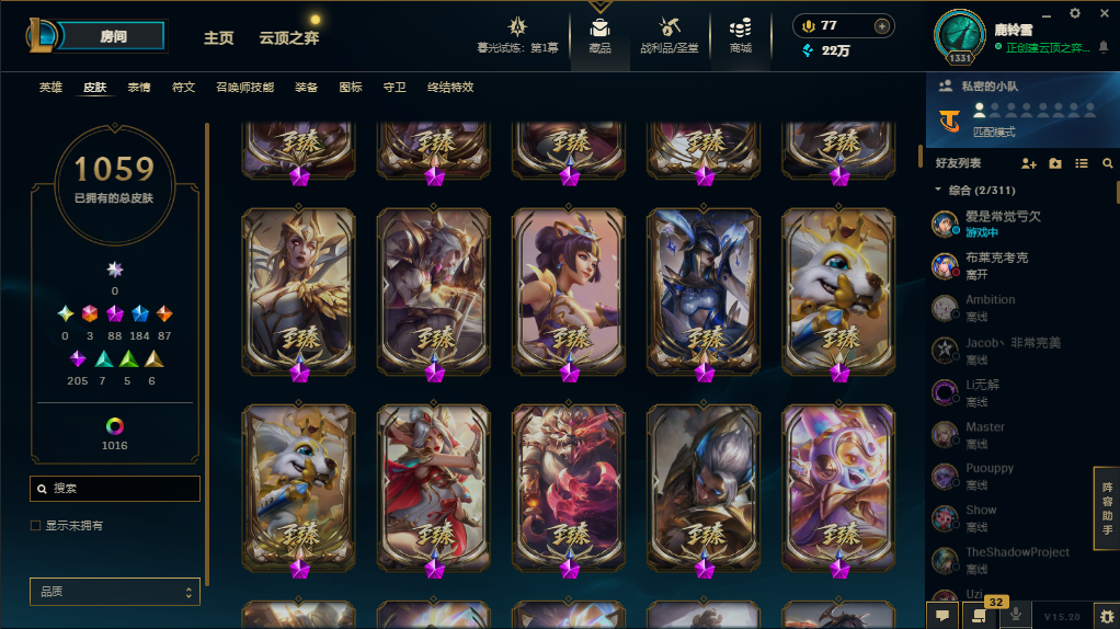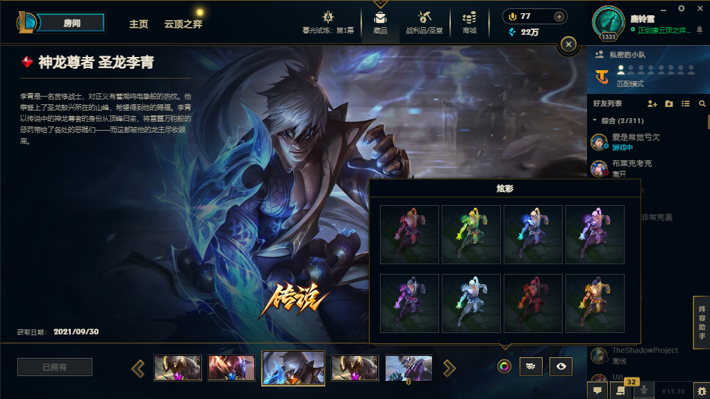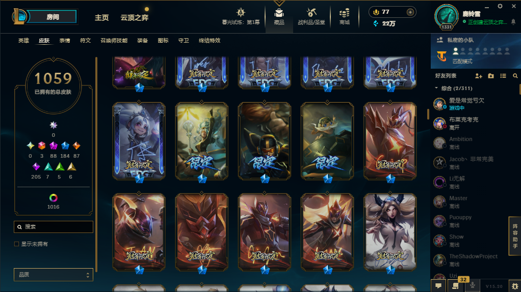 全区第一⚡2000皮肤⚡神话88⚡妹子号⚡蓝龙瞎⚡神龙李青➕金色臻彩⚡EDG套FPXI套iG套