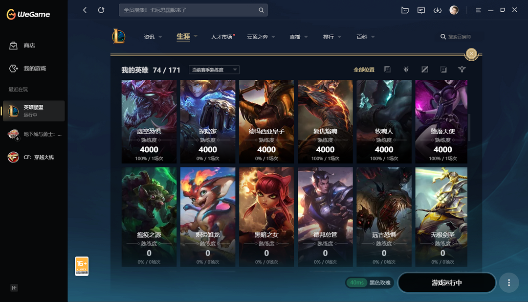 限制: 撤单率<50%才可租用此帐号英雄: 74