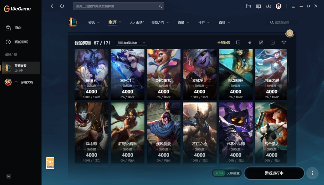 限制: 撤单率<50%才可租用此帐号英雄: 87