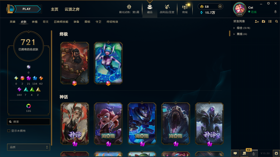 皮肤740+ 龙虾 周年限定 满英雄,掉分无所谓,排位随便打