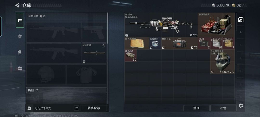 装备描述:六级体力,四级负重,号上还有五百万现金,aw两发,红蛋若干,若干枪皮和挂饰