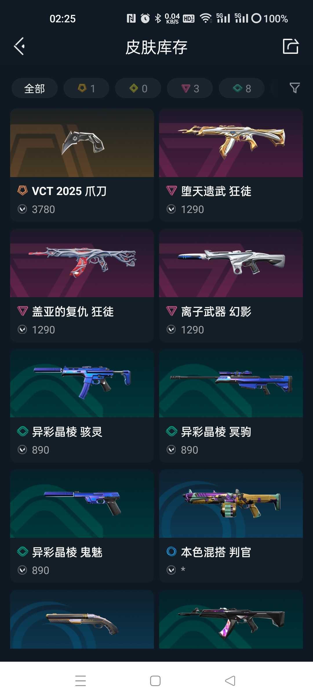 限制: 撤单率<75%才可租用此帐号装备描述:VCT爪刀2025✨盖亚狂徒✨堕天遗武狂徒✨离子武器幻影✨特效拉满✨到时不挤号✨禁止开挂