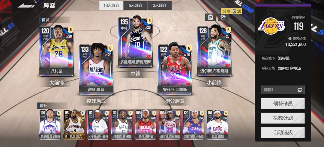 有满突夏普,萨博尼斯,卡鲁索,西蒙斯,布里奇斯和一些实用球员,全模式可打