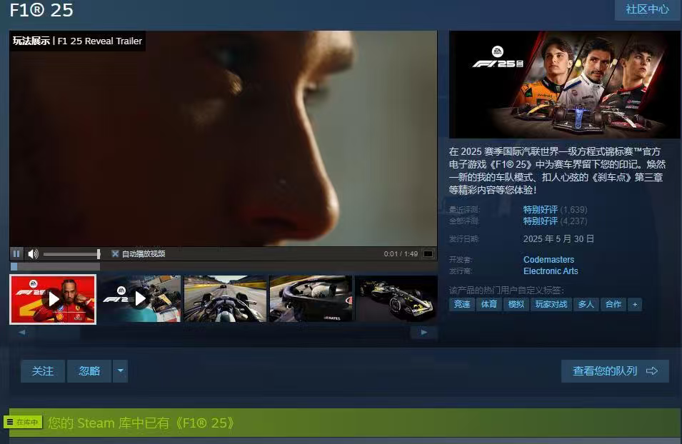 装备描述:F125《F1® 25》⭐预购398元传奇冠军版⭐已绑定EA可直接游玩游玩⭐顶级体验!