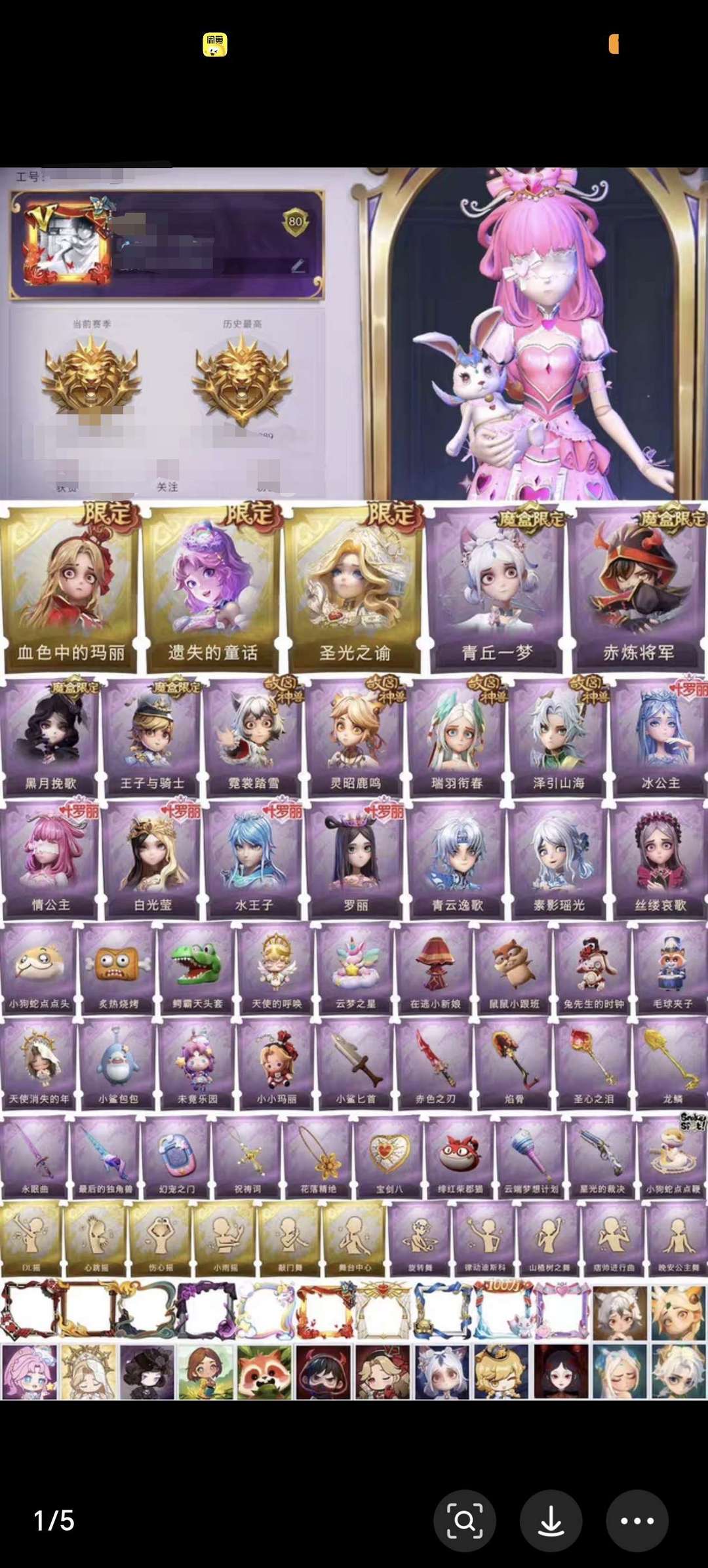 限制: 撤单率<29%才可租用此帐号装备描述:账密登陆一单一密放心玩 恶意撤单会秒挤号拉黑 三耀世:血色中的玛丽10抽满+遗失的童话10抽满+圣光之谕10抽满,小鲨匕首满抽,s1~s4赛季魔盒皮齐s1青丘/s2赤炼/s3黑月/s4王子,4故宫/5叶罗丽/2青花瓷全联动 安卓苹果互通登陆,铲铲币且用且珍惜,如果没了麻烦自己摸一把 喜欢本账号请点点❤️收藏❤️,方便下次租用哦~
