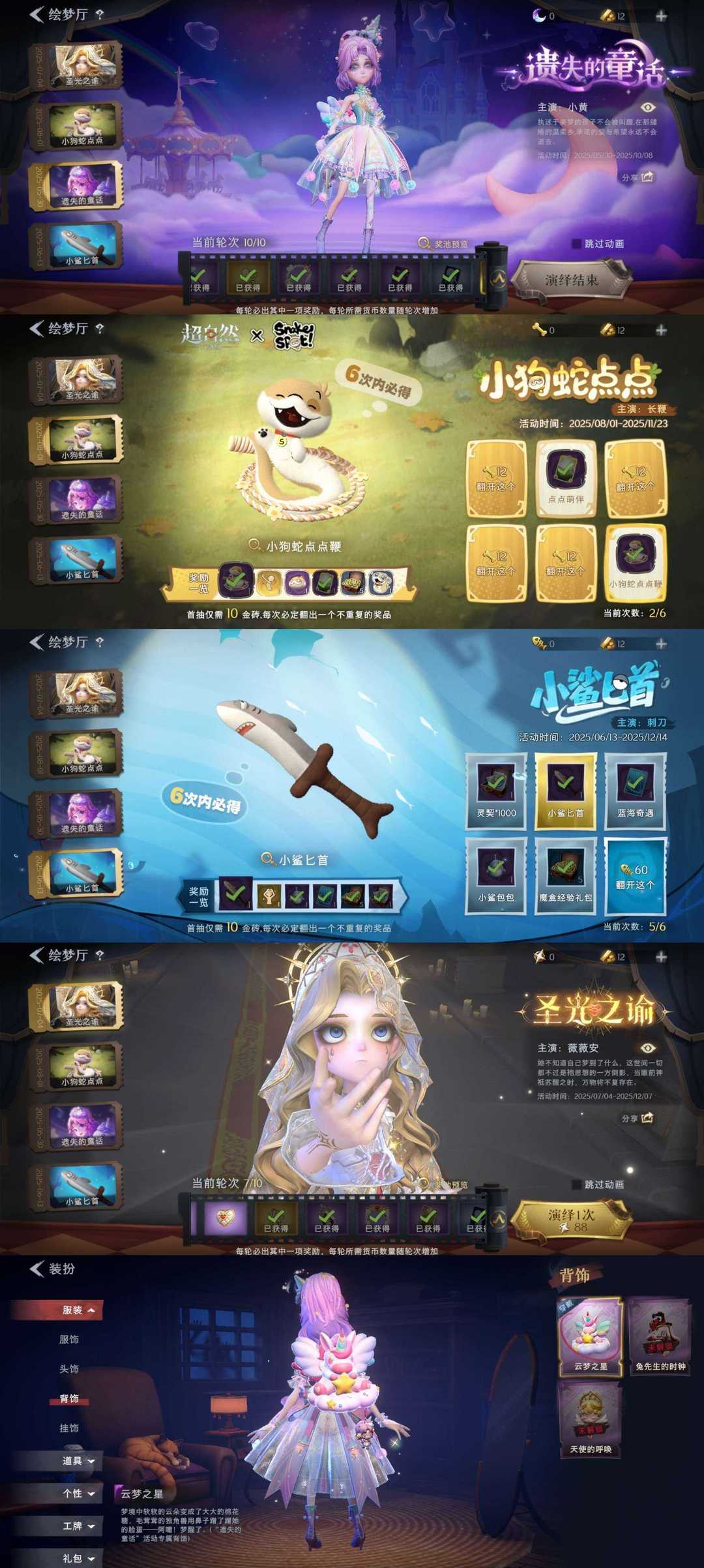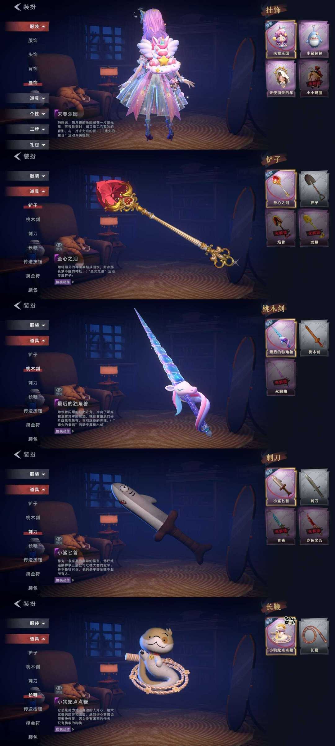 2金2紫/遗失的童话/圣光之谕/小鲨鱼匕首/呱呱雨衣小狗蛇点点鞭/丝缕哀歌/