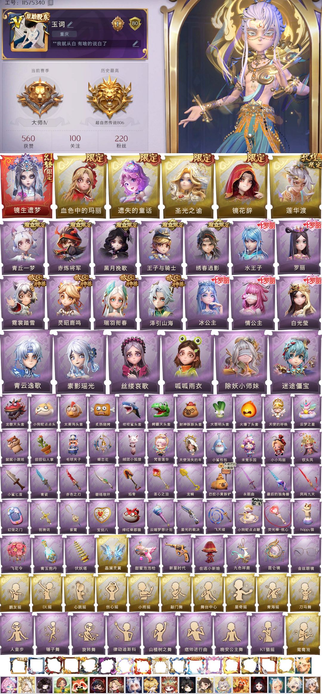 装备描述:故意撤单两次拉黑 一单一改密 全图鉴满内测✨莲花渡满抽✨异色序曲✨镜生遗梦✨1梦幻5金21紫皮✨兔宝✨满氪满魔盒满金满紫✨晶澜炅翼
