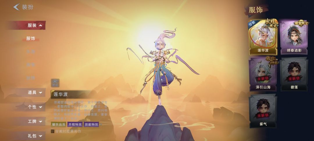 限制: 撤单率<50%才可租用此帐号装备描述:逍遥-莲华渡,薇薇安-圣光之谕;饰品:头饰-火爆了头套,头饰-鱼头怪头套,头饰-烈焰红唇头套,头饰-面具马头套,头饰-哈士奇头套,头饰-萨卡班甲鱼头套,头饰-嘻嘻头套,头饰-滑稽头套,头饰-呆滞头套,头饰-卑微头套,挂饰-未竟乐园;动作:动作-举牌,动作-抬手;