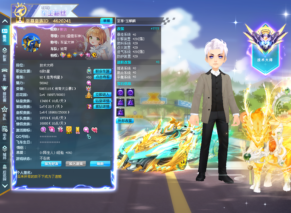 装备描述:最强仙兽麒麟+10,首辆228S车,全295️⃣四级至臻爆天甲、全295️⃣四玉麒麟,全293️⃣四至尊神奥丁、暴风雪全29双四级极光皮肤LV9、镇海敖丙、终极猛兽、M18疾影、全29准进阶40T2赵子龙T2圣天使T2白龙马、魔王雷诺全29单四,全29飞碟,原装至尊帝王,通天晓,原装爆天甲,大量A车各种体验,神笔牛牛+10。