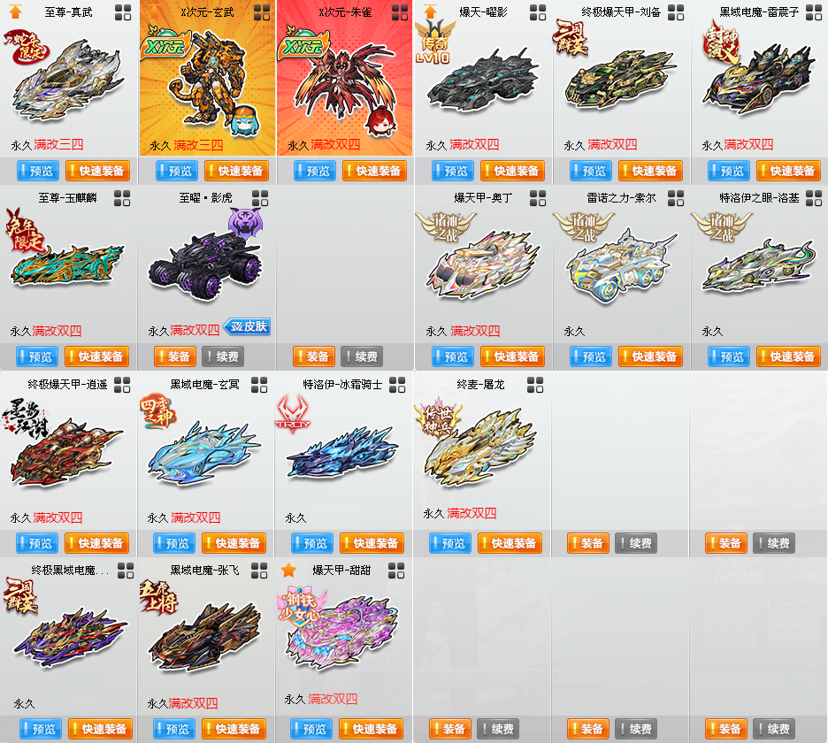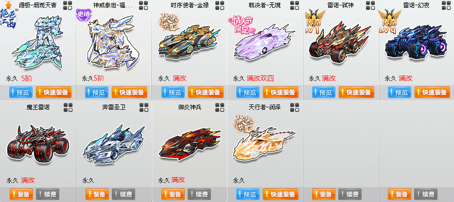 限制: 撤单率<70%才可租用此帐号装备描述:〓S〓14辆〓至尊玄冥-真武/X次元玄武、至尊火麒麟-玉麒麟、至尊涅槃-X次元朱雀、至曜影虎、爆天甲-曜影10阶/奥丁、终极爆天甲-刘备/逍遥、黑域电魔-雷震子/玄冥/张飞、特洛伊之眼-洛基/冰霜骑士、雷诺之力-索尔、终极黒域电魔-曹操、爆天甲-甜甜 〓T2〓3辆〓源极-烟雨天青5阶、神威泰坦-福睦舰长5阶 〓A〓10辆〓时序使者-金禄、魔王雷诺、裁决者-无镜、雷诺-幻夜4阶/弑神1阶、奔雷圣卫 〓骑宠〓5只〓雪凝公主+10 〓其他〓10W魅力、1400W荣誉、紫钻6、皇族6 〓女〓40页套装〓稀世·明日之诗套装、稀世·永夜之吻套装 〓男〓60页套装〓稀世·创世死神套装、稀世·穹梦韶宇套装、稀世·鸿运锦鲤套装