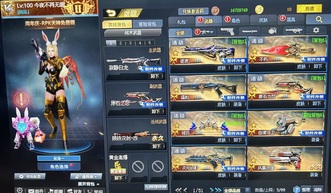 装备描述:具体有哪些武器,欢迎大家租号来,本人不用挂,禁止开挂,谢谢配合