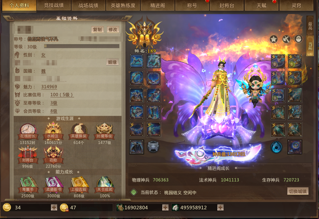 装备描述:130W神兵 1灵尊2神话 站街679爆伤 宠物鲲鹏 五岳 睡仙 金星灵 星灵 星月 鸡毛掸子 幻神 最佳情人 海王射潮 庸神剑 猪猪 奶糖 萌萌哒 旺财 战力套 金牌改名卡 614皮肤 周年5300 详细看图自动登录梦平台——点击开始游戏——进入游戏——出现二级密码后——按F9——鼠标迅速输入1234 确定 (1234跟号主财产无关)——二级锁解开— 游戏秒退 ——用上号器在次点击开始游xi