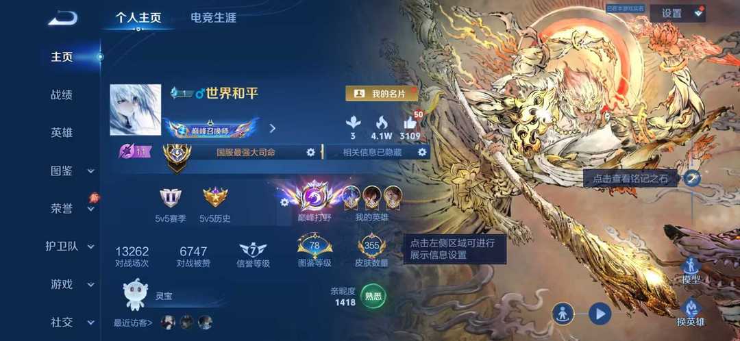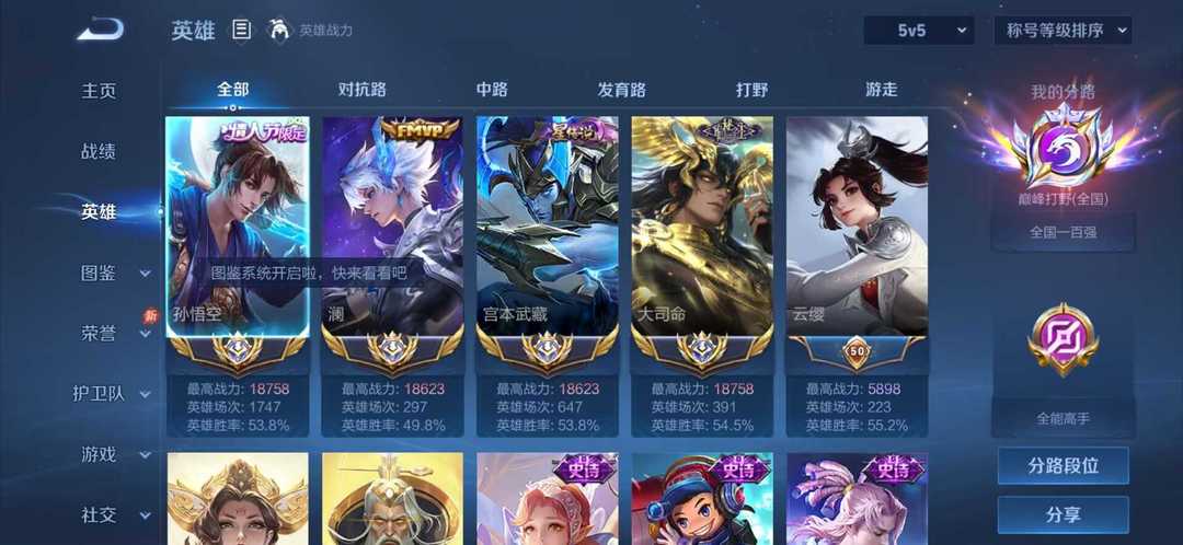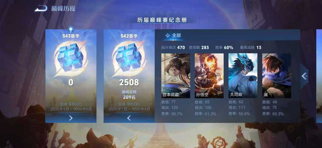 巅峰全国100名⭐4月正式服在榜四国服澜孙悟空宫本大司命⭐巅峰百强打野⭐可排禁巅峰