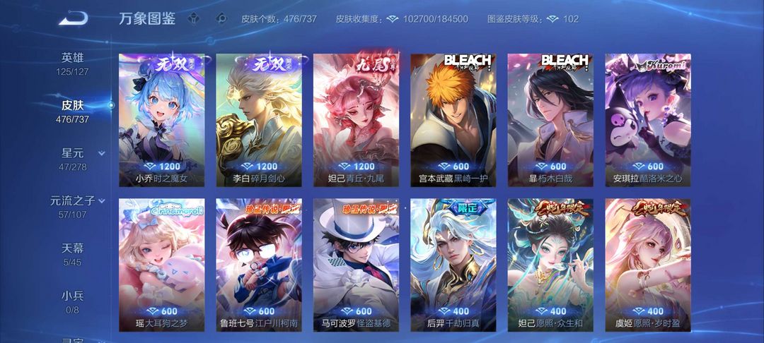 老板您好!凯无双已补⭐貂蝉珍品⭐诸葛李白耀甄姬安琪拉妲己无双⭐7典双⭐多满年限皮⭐出新皮秒补⭐
