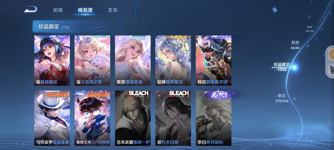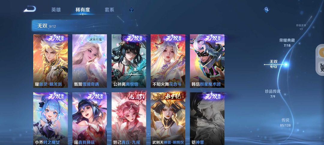 无双V10号617皮肤貂蝉慕夏8水晶9无双7珍品满蛇年花合斗