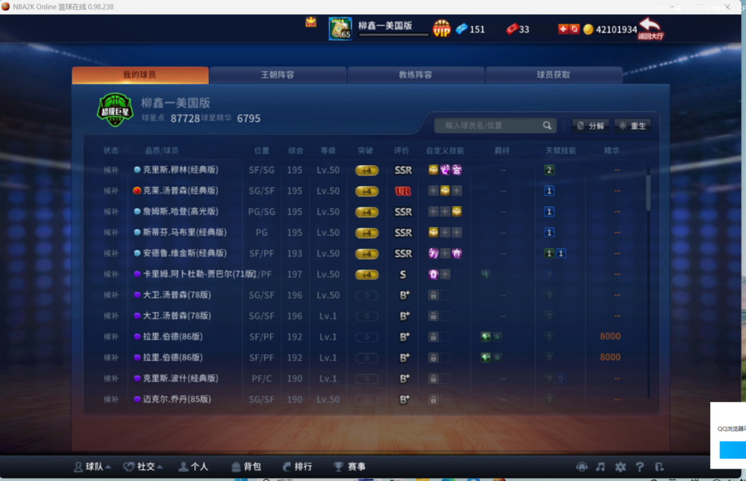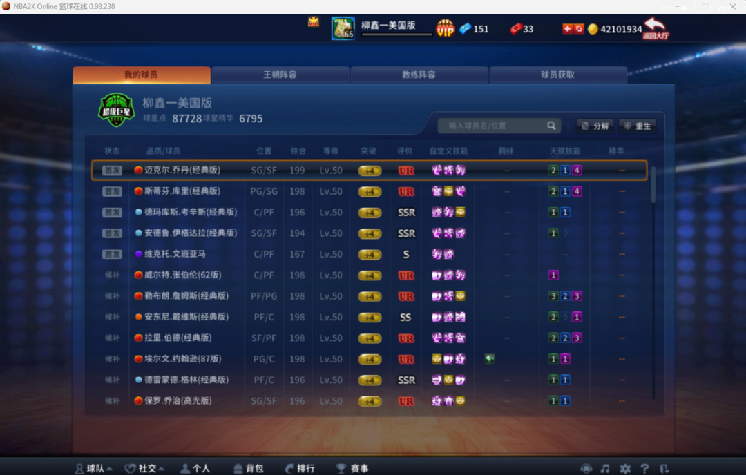 限制: 租号2次及以上 |装备描述:本人大号该有的球员都有玩就完了ur库里+詹姆斯+伯德+乔丹还有文班亚麻等一些见不到的球星物美价廉期待兄弟们捧场你懂的