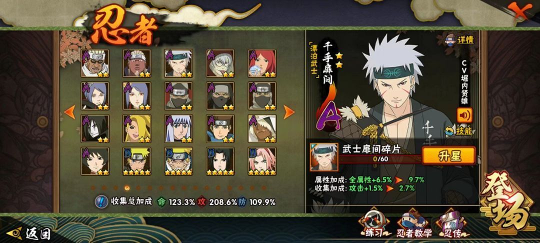 九喇嘛水门⭕夏日黑土⭕暴怒六尾鸣人⭕400忍⚠全点卷A忍⭕2500W战⭕漂泊带土