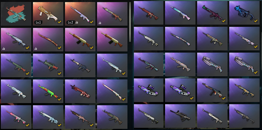 满级号✅奢华版跑车✅2神器✅玩偶屋SLR✅亚特兰DBS✅猎人武器套✅疯狂科学武器套✅PGC斑斓礼包✅